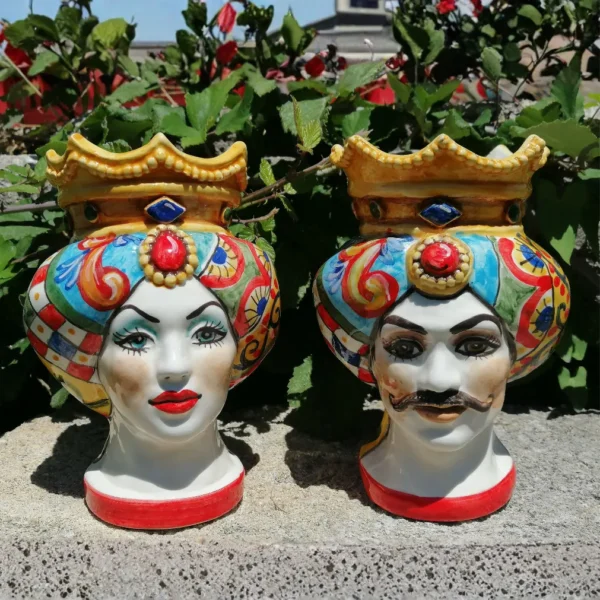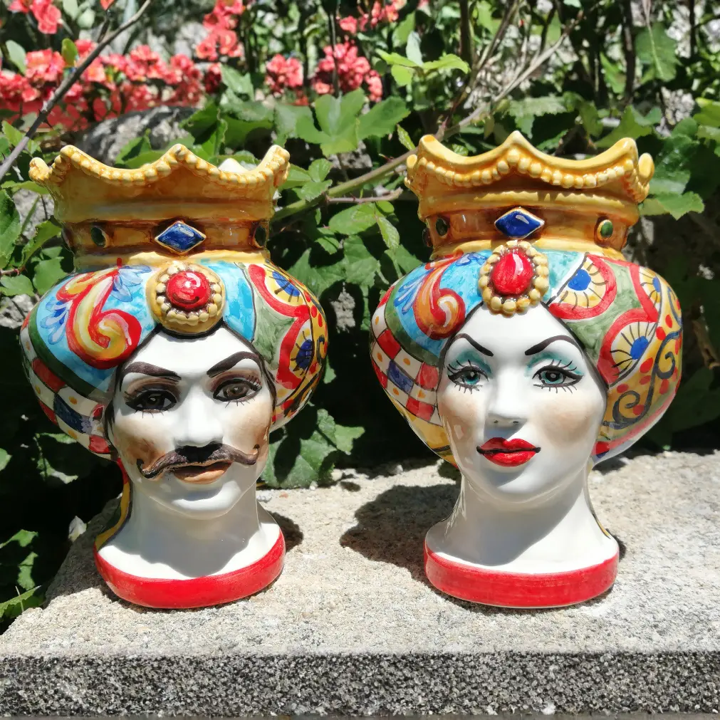 COPPIA TESTE IN CERAMICA DECORO POLICROMO TRADIZIONALE H CM 15 MULTICOLORE